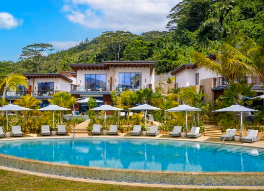 Upscale resort in the Seychelles chain, good for guests arriving via yacht tender or sea-plane and requiring high service levels in the archipelago.